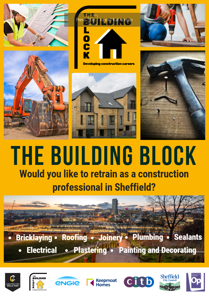 Opportunity Sheffield is leading a consortium of public and private sector organisations on ‘The Building Block’ training scheme, supported by CITB’s Construction Skills Fund.