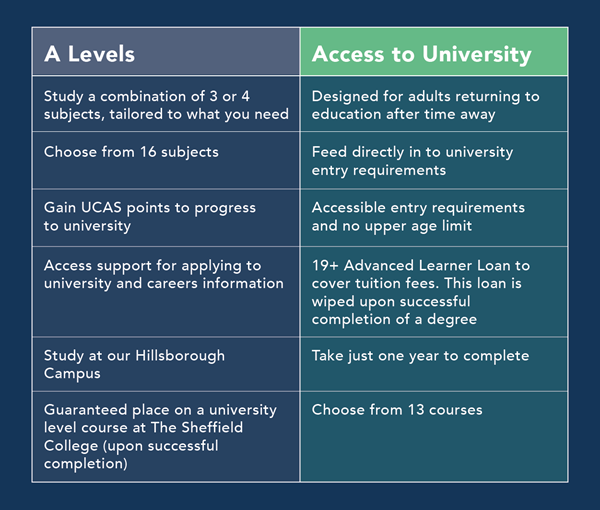 Education experts will be on-hand to explain the entry requirements for university and provide information about The Sheffield College’s pre-entry courses and pre-A-Level courses, which include: