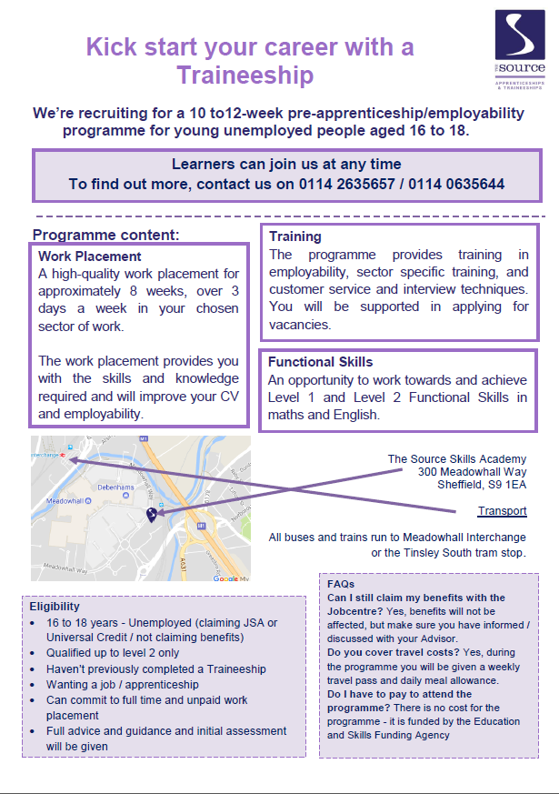 The Source is seeking referrals for its 10-12-week Traineeship programme, which is geared at improved candidates’ employability.