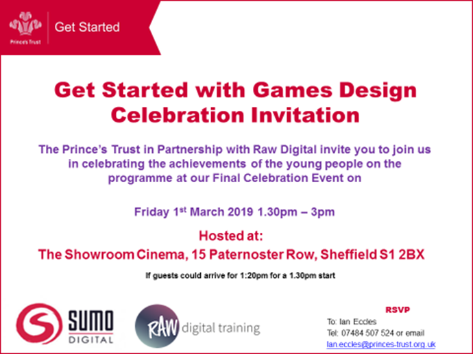 The Prince’s Trust and RAW Digital Training are inviting you to join them at a Final Celebration Event to mark the achievements of participants on their
