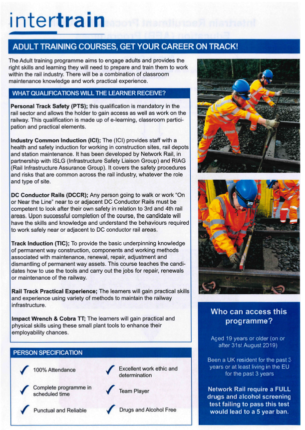Intertrain is seeking referrals for its Adult training programme, which is open to individuals who are aged 19 or older who have been a UK/EU resident for at least the last three years.