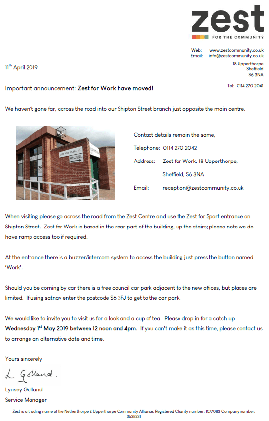 Zest for Work moves to Shipton Street; open day for visitors on Weds 1 May Opportunity Zest April 15, 2019April 15, 2019 1 Minute Share this: Share on X (Opens in new window) X Share on Facebook (Opens in new window) Facebook Like Loading... Related Published April 15, 2019April 15, 2019