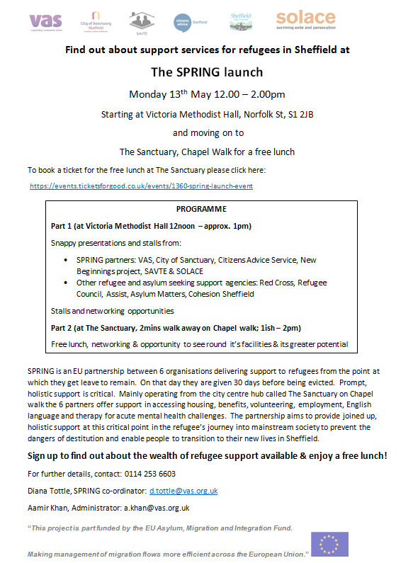 SPRING is an EU partnership between 6 organisations delivering support to refugees from the point at which they get leave to remain. On that day they are given 30 days before being evicted. Prompt, holistic support is critical.
