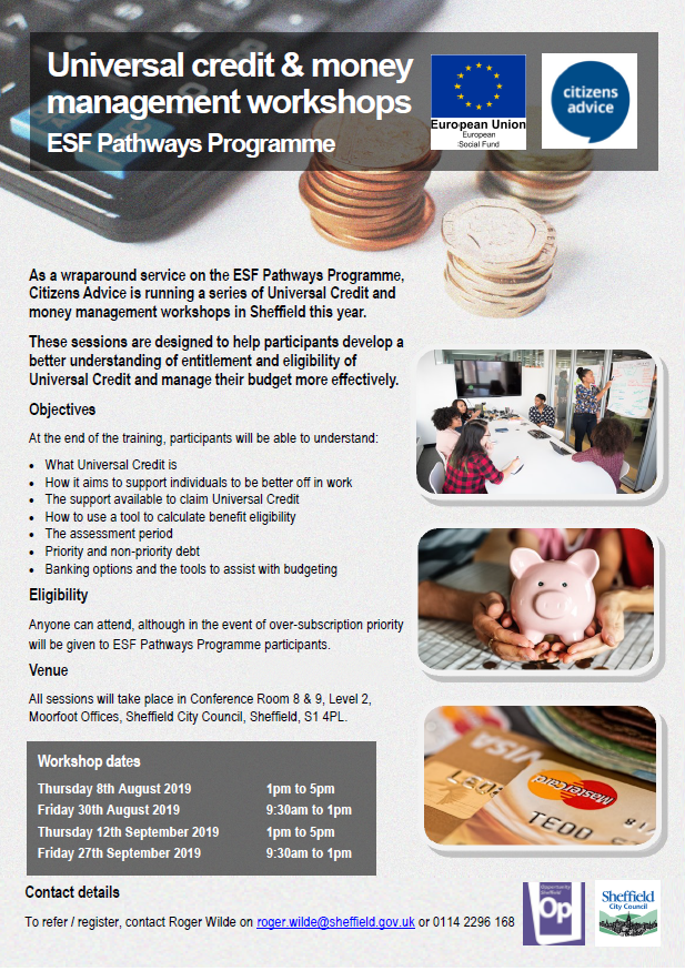 As a wraparound service on the ESF Pathways Programme, Citizens Advice is running a series of Universal Credit and money management workshops.