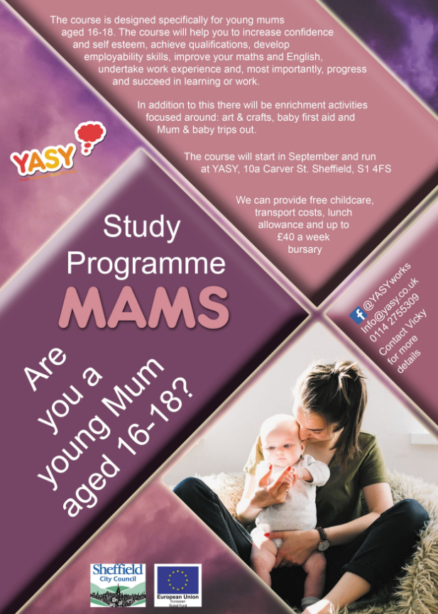 If you are working with any young mothers who you feel would benefit from the course, please email info@yasy.co.uk or phone Vicky or Tara on 0114-2755309