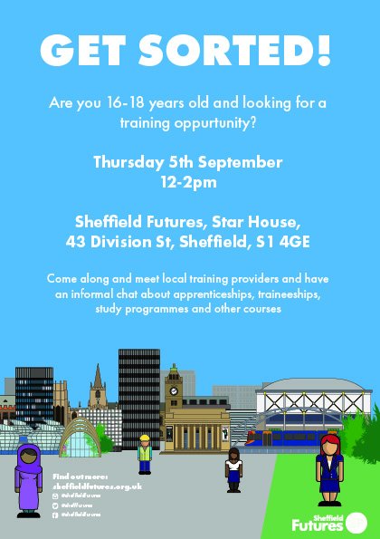 16-18-year-olds who have not yet arranged a training opportunity for the new academic year are invited to attend Sheffield Futures’ Get Sorted! event on Thursday 5 September.