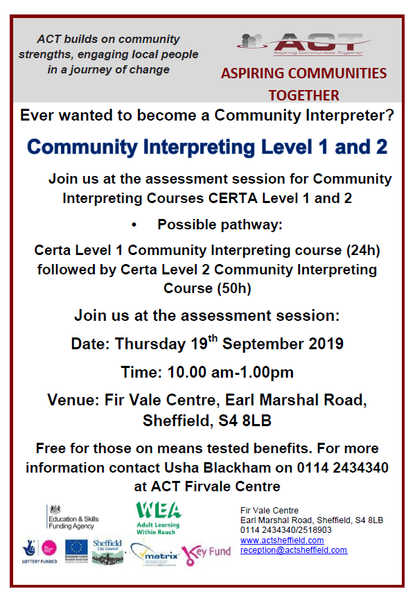 Aspiring Communities Together (ACT) is offering the opportunity to study Community Interpreting Level 1 and Level 2.