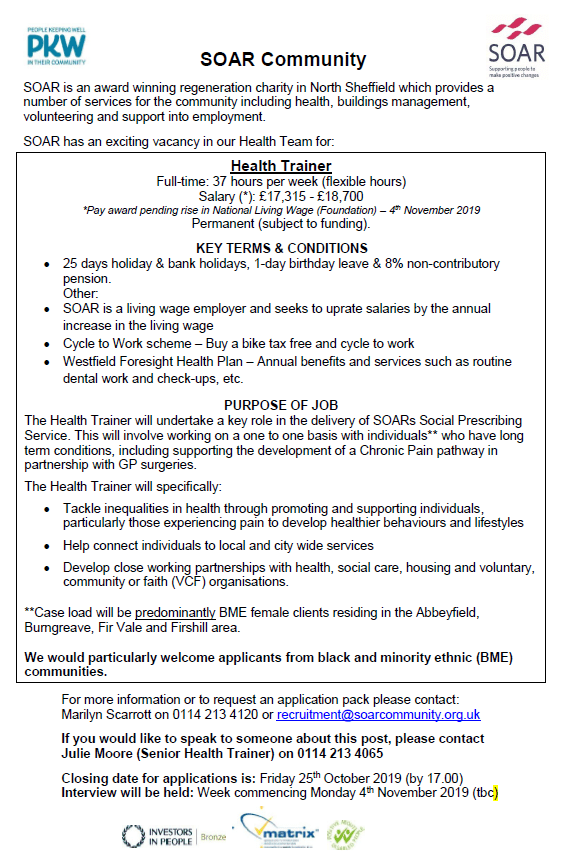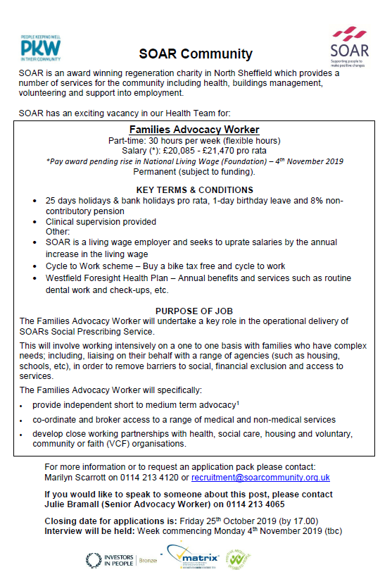 SOAR currently has vacancies for a Families Advocacy Worker and a Health Trainer.