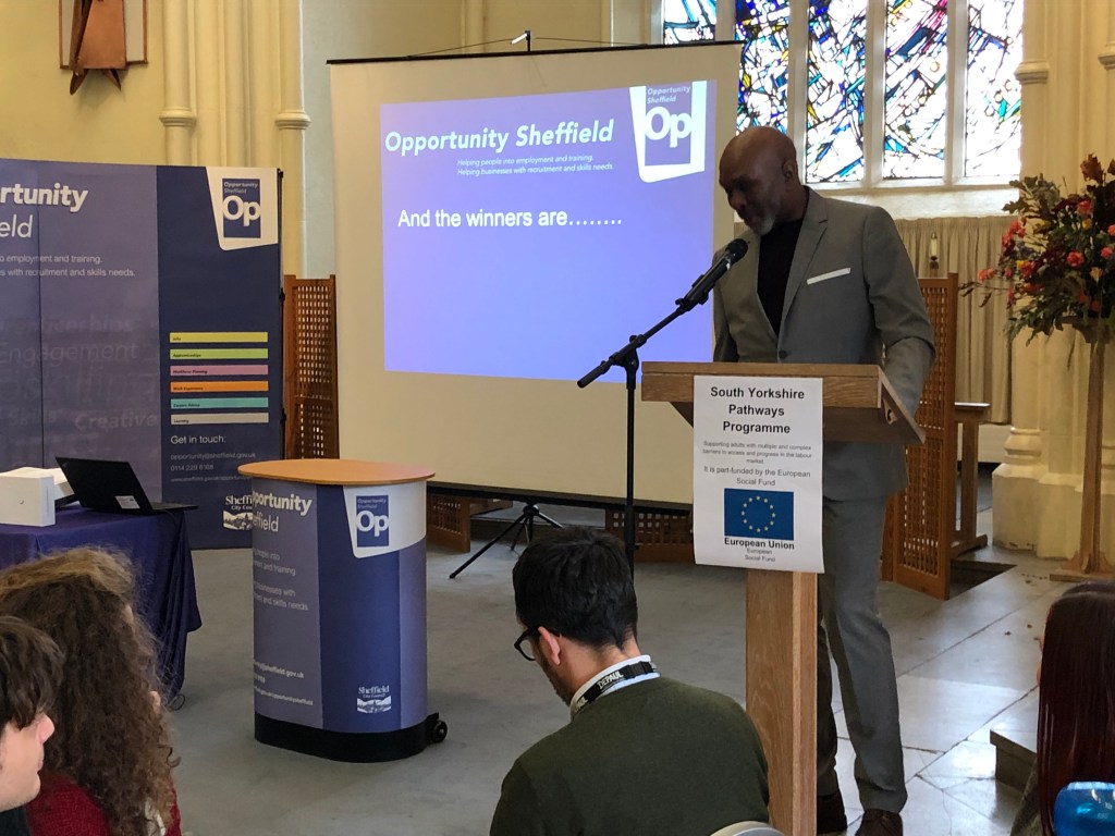 Cllr Adam Hurst, Cabinet Adviser for Education and Skills at Sheffield City Council, was welcomed to the stage to present the 2019 Opportunity Sheffield Awards. Advisor of the Year went to Tammy Piercey of Burngreave Works; Big Ambitions CIC was named Provider of the Year. Cllr Hurst also presented three Beneficiary Awards to Opportunity Sheffield programme participants who have overcome significant barriers to enter the employment market and thrive in the workplace.