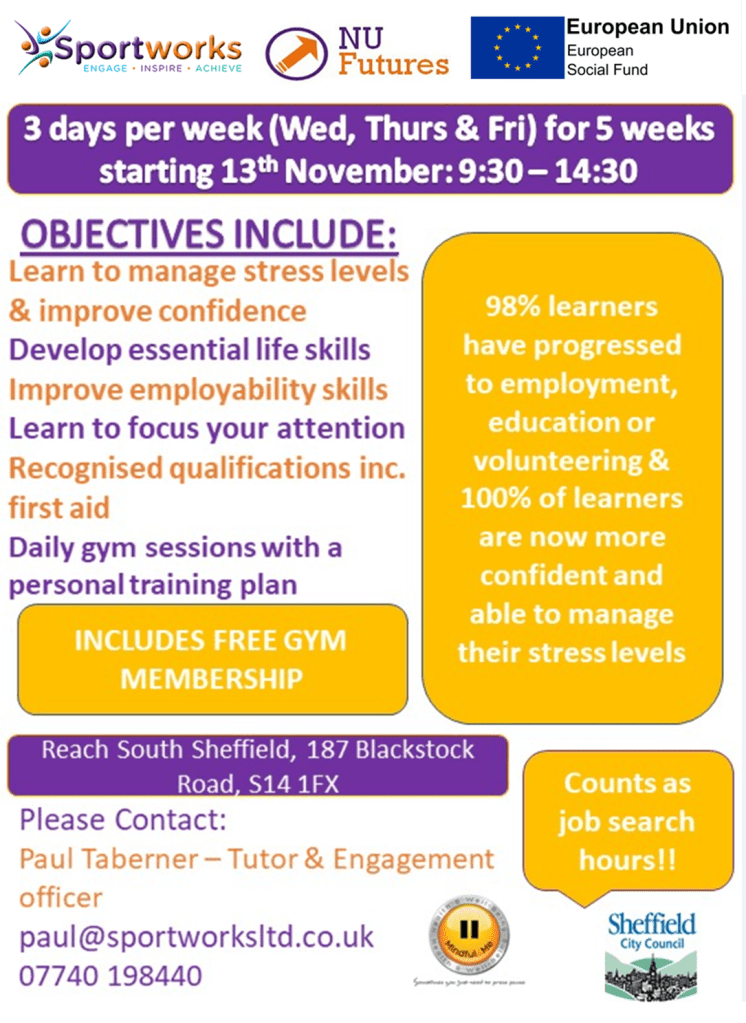The provider’s third Nu Futures course in Sheffield will take place from Wednesday 13 November, operated in conjunction with Reach South Sheffield.