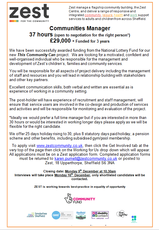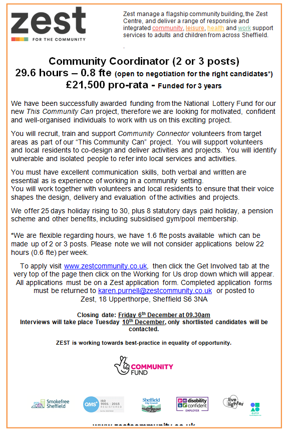 Zest has upcoming vacancies for a Communities Manager and Communitites Coordinators on its National Lottery-funded This Community Can project.