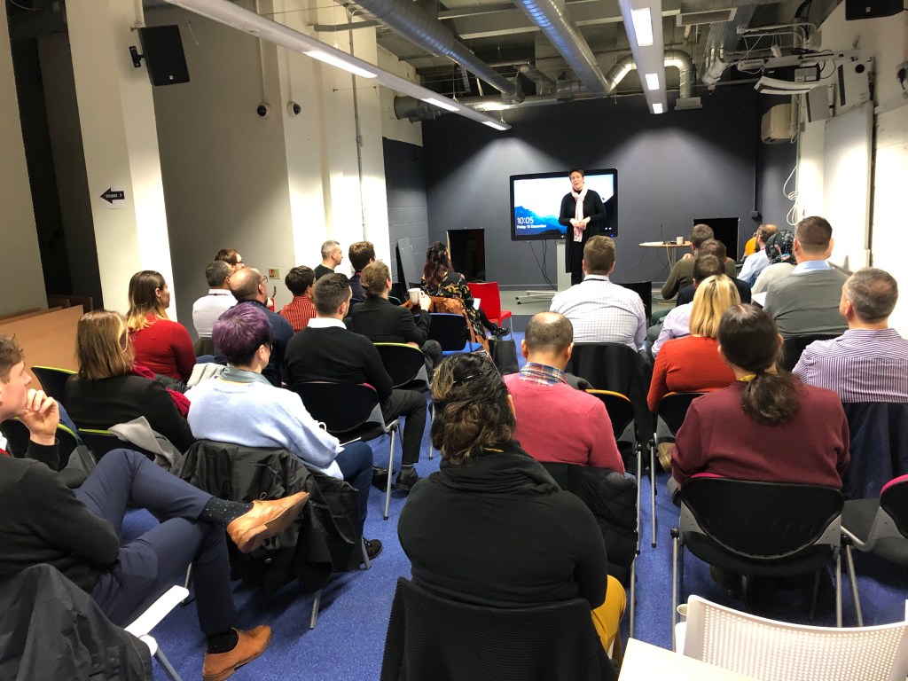 Pippa Gawthorpe, Site Manager at Red Tape Central, then took to the stage to welcome attendees to the training centre and draw attention to the range of provision available for leaners. She explained how Red Tape Studios offers the Level 2 and Level 3 Music Performance and Music Technology study programmes, along with AEB-funded short courses. Pippa also talked about Sheffield City Council’s traineeships, apprenticeships and new Digital Futures programme, which are delivered out of the city centre facility.