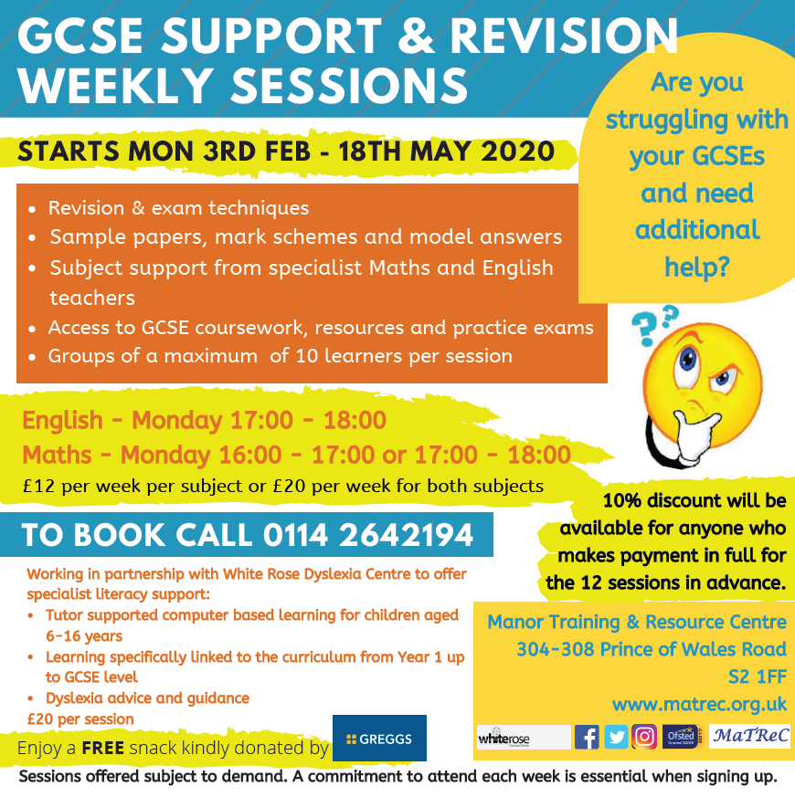 The training provider also continues to offer its GCSE revision sessions and Knit & Natter workshops, as detailed below: