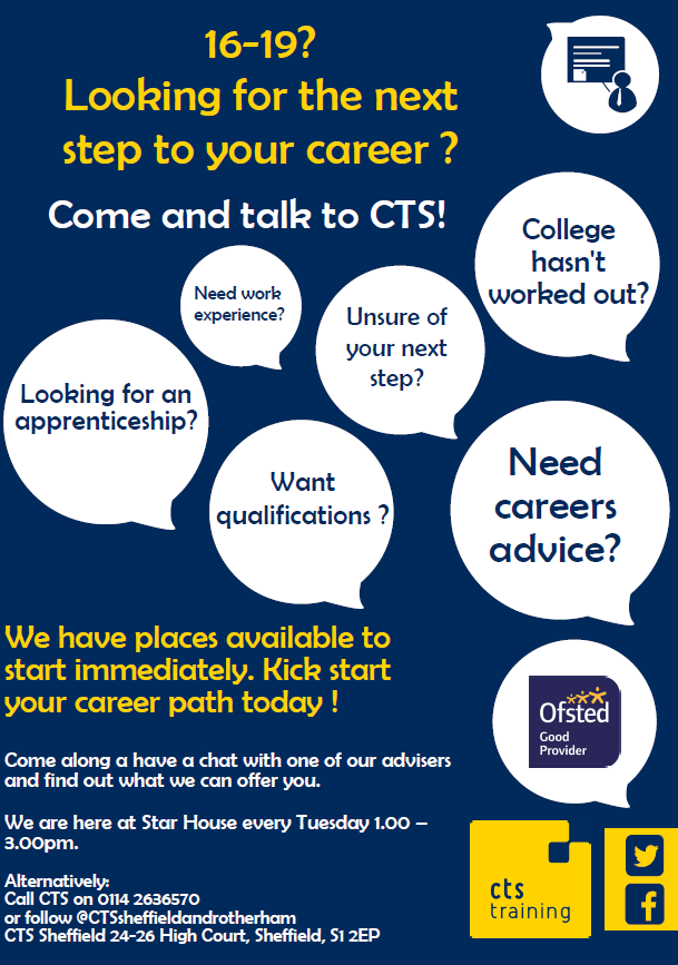 CTS Training is at Sheffield Futures every Tuesday afternoon, pop along for an informal chat.