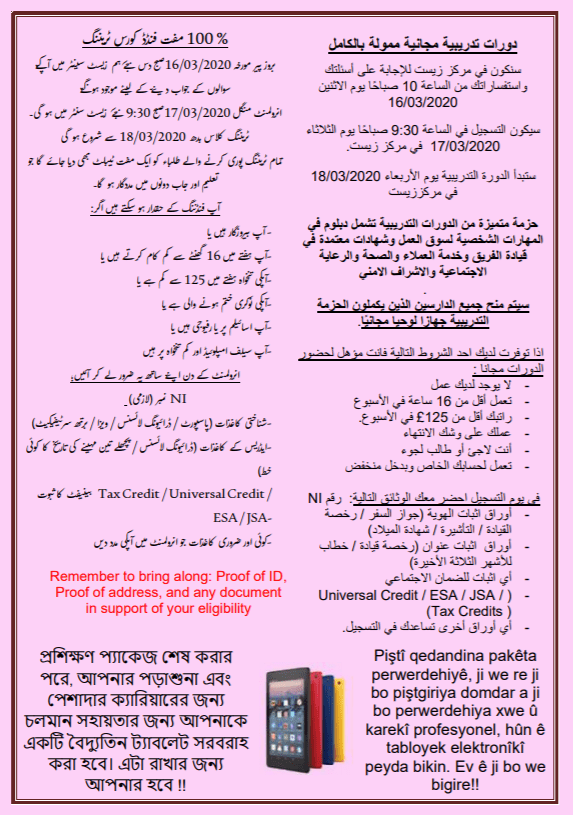 Free, funded training in Employability Skills, Health and Social Care, Customer Service, Team Leading and Security is available at Zest Centre, Upperthorpe, from Wednesday 18 March.