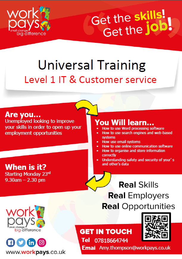 Workpays is seeking referrals for a Level 1 IT & Customer Service course starting on Monday 23 March (9:30am-2:30pm).