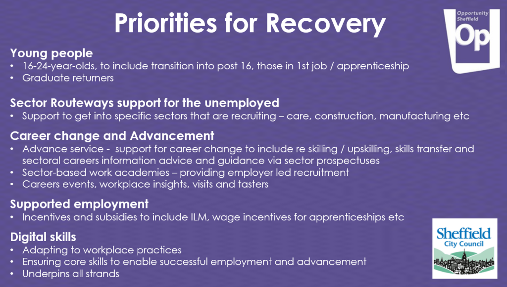 See below for the slides from the presentation delivered Laura Hayfield, Head of Employment and Skills at Sheffield City Council, at the Teacake Club meeting on Friday 26 June.