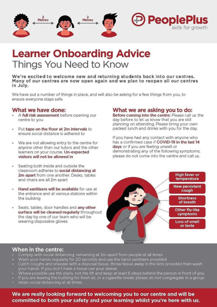 PeoplePlus Academy is to reopen to learners on Monday 6 July with social distancing measures in place at Portland House.
