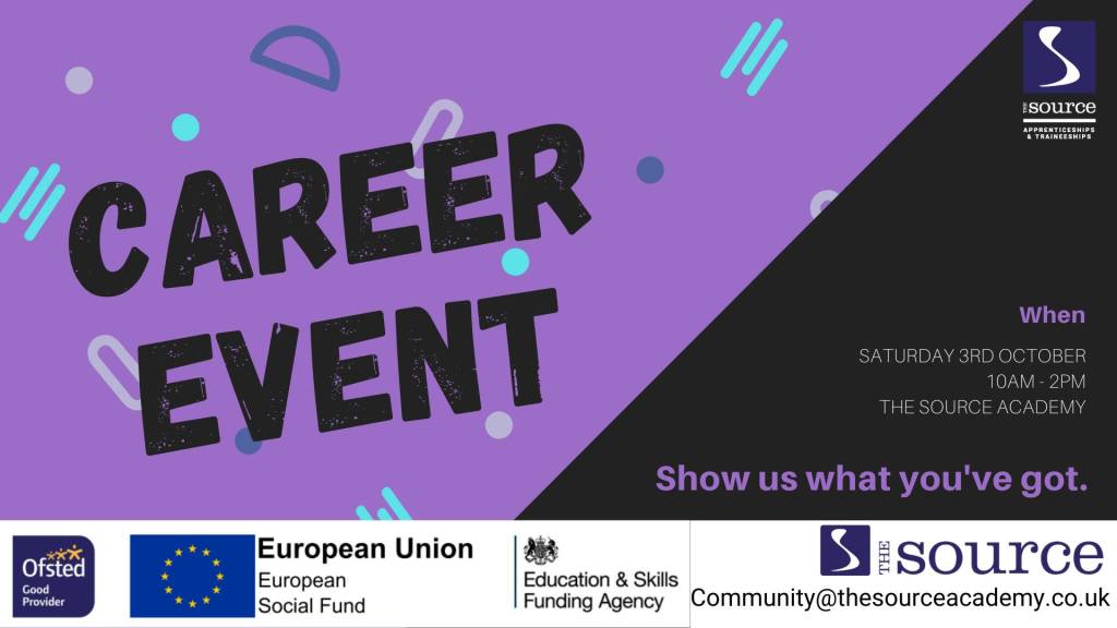 The Source is to run a Careers Event on Saturday 3 October, where tutors and advisors will be on-hand to offer information, advice and guidance about apprenticeships, adult education and more.