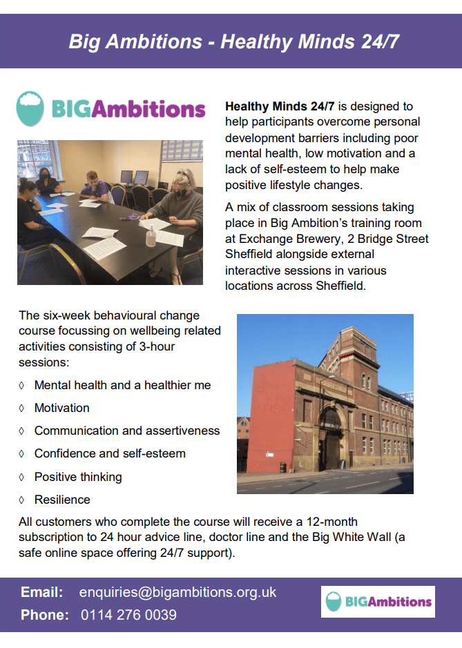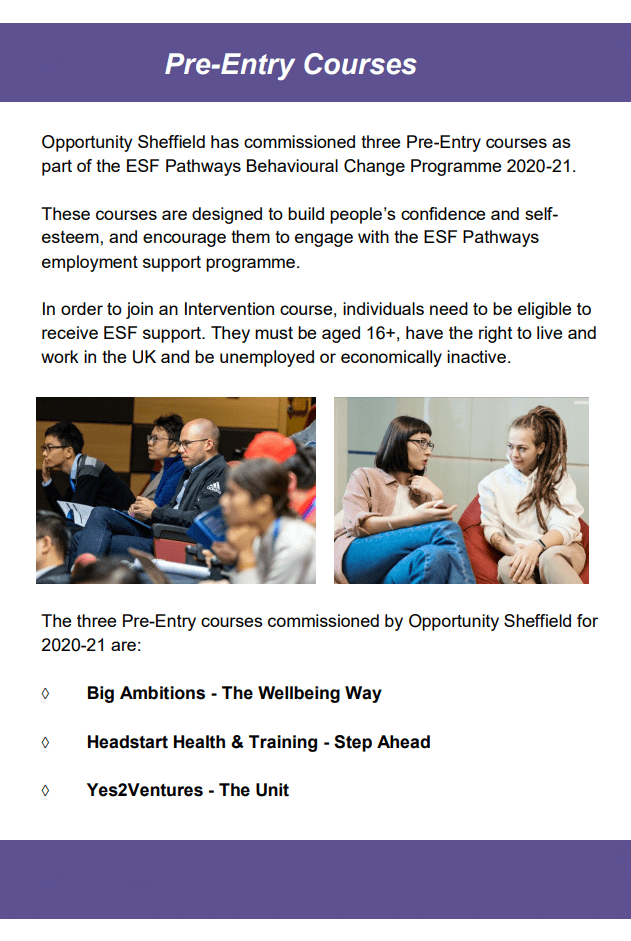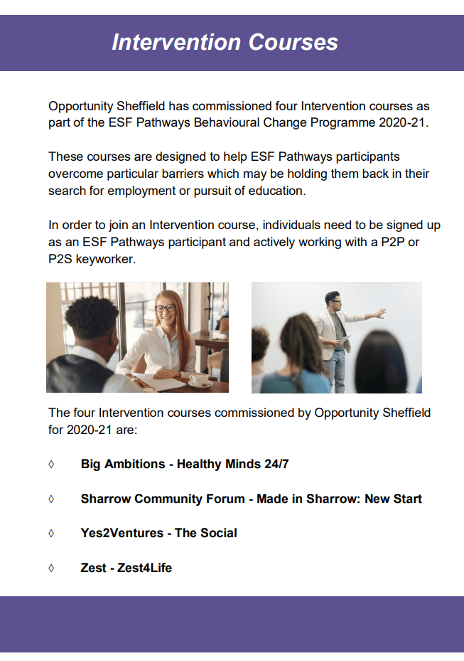 You can now download a brochure documenting the seven behavioural change courses commissioned by Opportunity Sheffield for 2020-21.