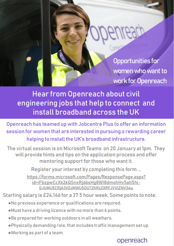Openreach – which manages the nationwide telecommunications infrastructure used by BT and other service providers – is working with DWP/JCB to find suitable candidates.