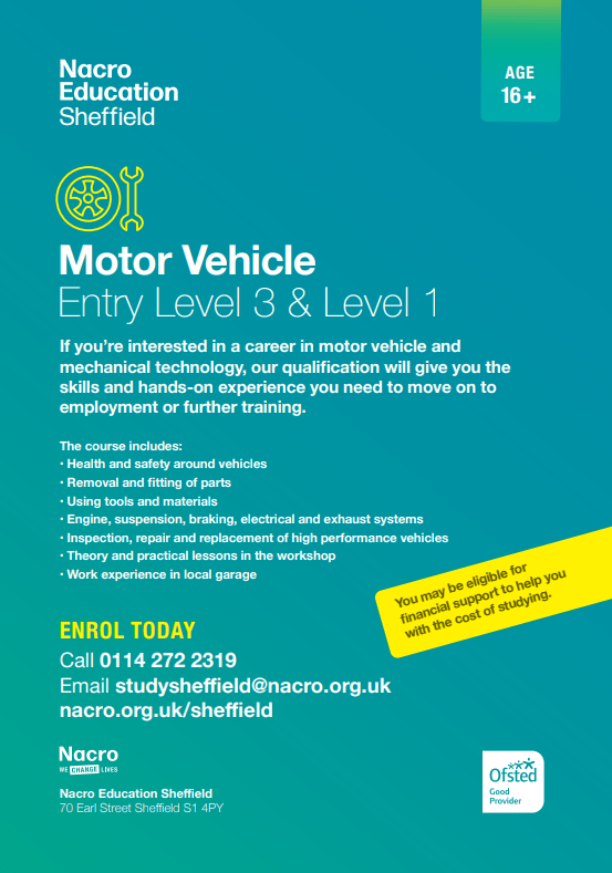 Training provider Nacro Education Sheffield – which has a base in central Sheffield – is seeking referrals to its training programmes.