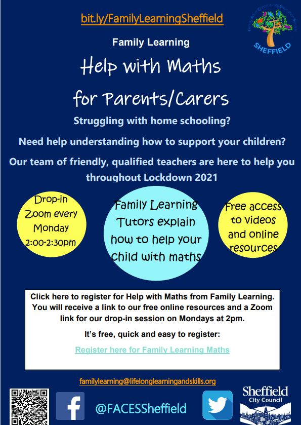 Sheffield City Council’s Family Learning teams (FACES) is running online sessions designed to assist with home schooling delivery.
