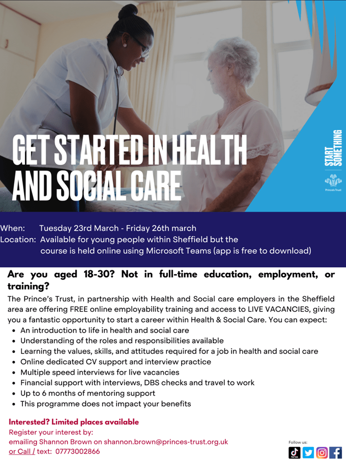 The Prince’s Trust is working with the NHS to support 18-30-year-olds into entry-level roles in health and social care.