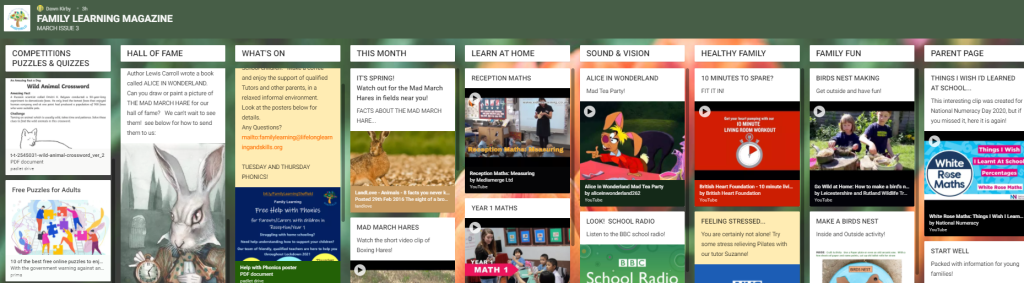 FACES has updated its Family Learning padlet with a host of information and activities for March.