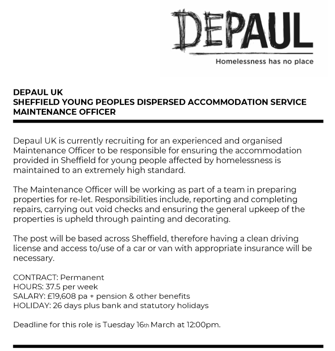 Depaul has a vacancy for a Maintenance Officer.