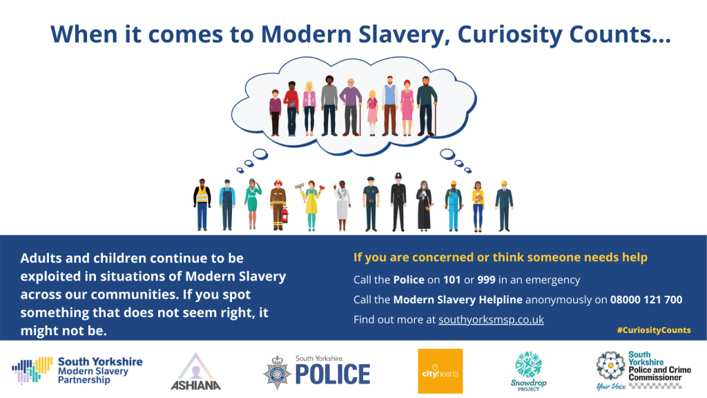 The SY Modern Slavery Partnership is running a collaborative campaign this week (focusing particularly on criminal and sexual exploitation) aimed at people working in and with the community during lock down restrictions