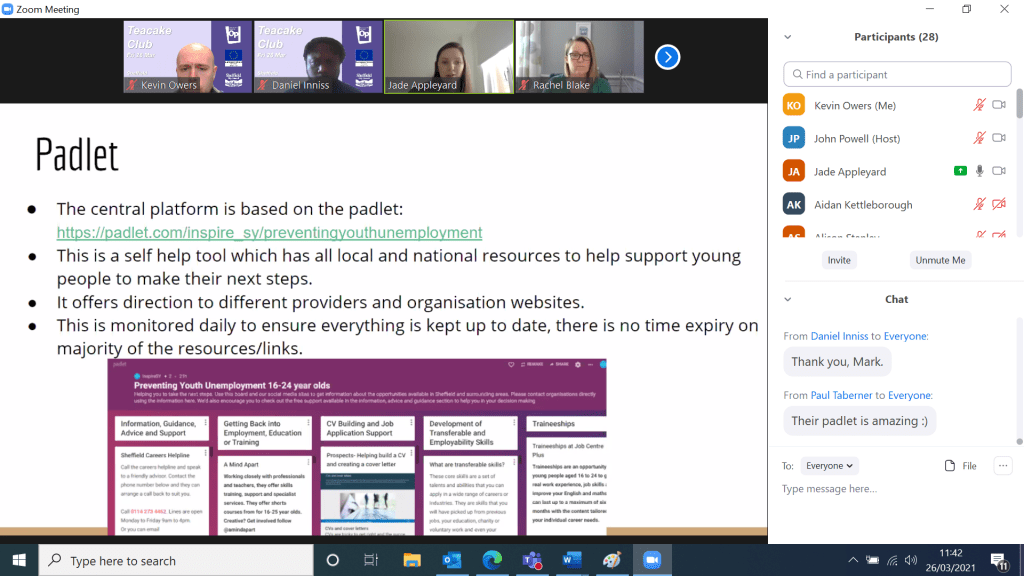 Another Teacake Club debutant, Thomas Winbow from Momentum Training, introduced his organisation – a Sheffield-based provider – and its current course provision. Momentum is offering training for security staff via the SIA Badge (Door Supervision), currently being delivered via blended learning, with the mid-term goal of returning to full face-to-face delivery as soon as Covid conditions allows. The provider also offers Welding training at its site in Hillsborough, which feeds into jobs and apprenticeships in the local steel industry.