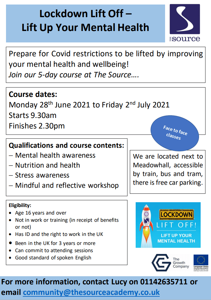 The Source is running a five-day course on mental health and wellbeing to prepare for the lifting of Covid lockdown restrictions.