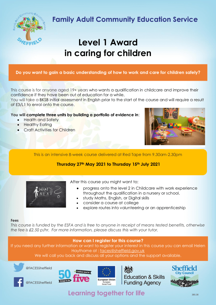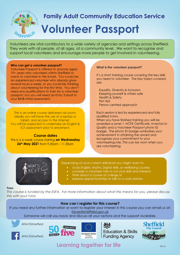 Sheffield City Council’s FACES team has places available on three community learning courses which begin next week.
