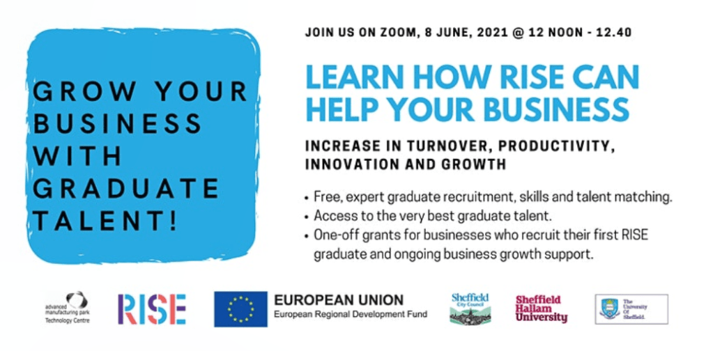 RISE is a business support programme for SMEs (businesses with less than 250 employees) in the Sheffield City Region. Its helps businesses to recruit graduates by overcoming the common barriers they face and equipping business partners with the tools to become successful graduate employers.