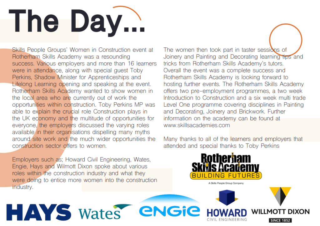 Two weeks ago Skills Academies hosted a Women in Construction event to showcase opportunities available in the construction industry to women within the South Yorkshire area.
