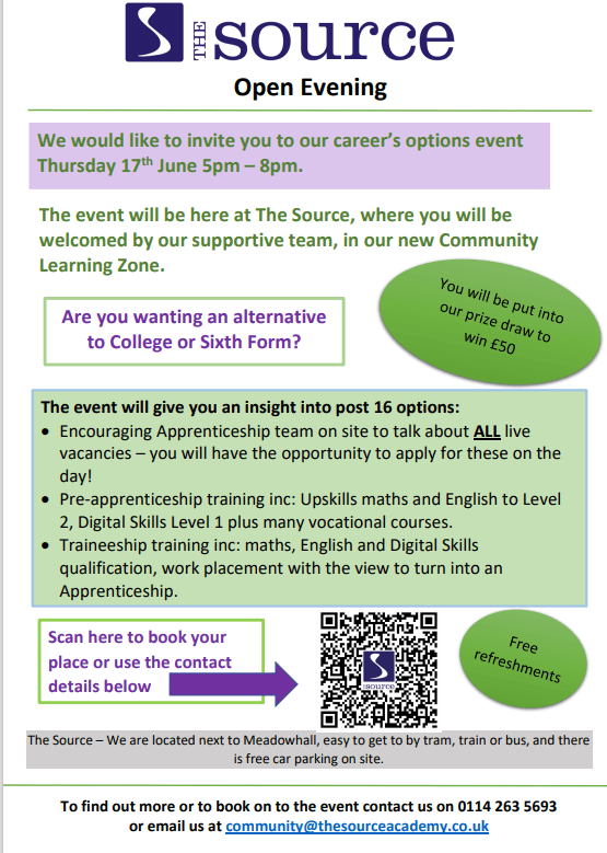 The Source is running a careers options evening at its Community Learning Zone between 5pm and 8pm on Thursday 17 June.