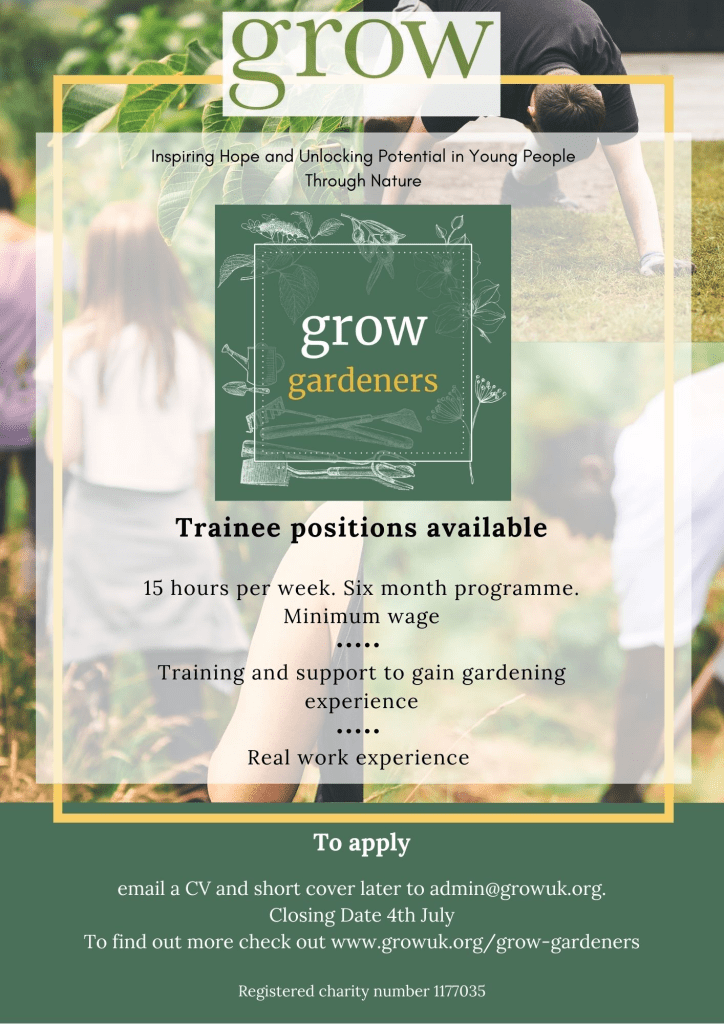 Job vacancy: Trainee roles 15 hrs per week (Grow) Opportunity Grow UK June 24, 2021 1 Minute Share this: Click to share on X (Opens in new window) X Click to share on Facebook (Opens in new window) Facebook Like Loading... Related Published June 24, 2021