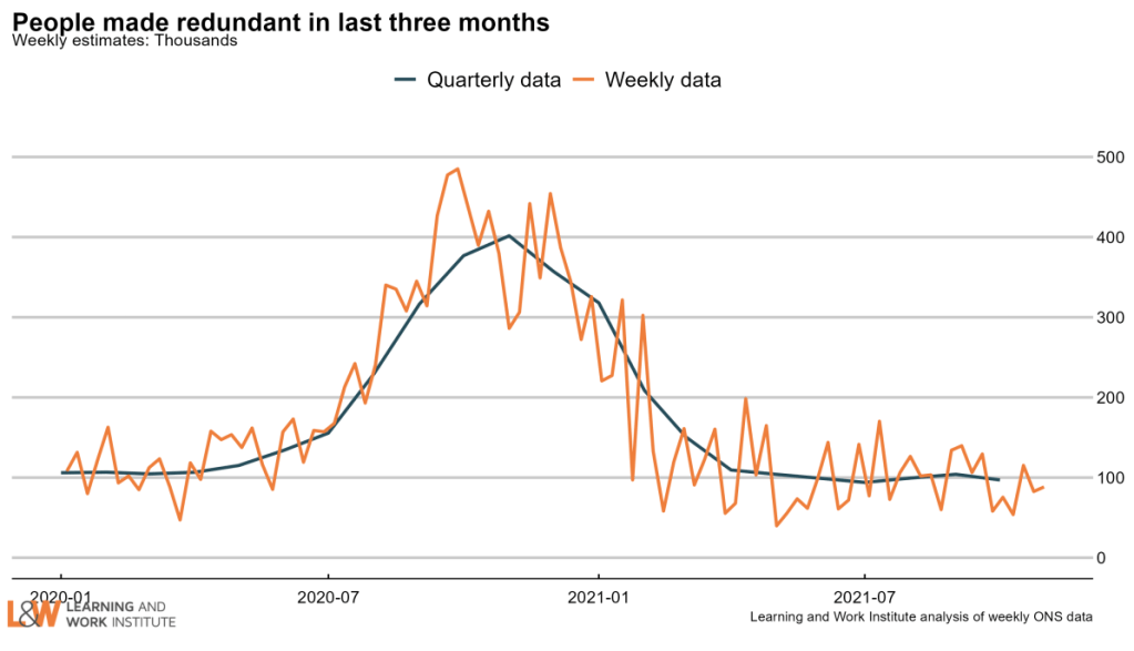 There were 1.14 million people furloughed at the scheme’s end in September 2021, of whom 640,000 were fully furloughed. The early signs are that the end of the scheme has had relatively little impact on employment. The number of people made redundant remains relatively low and at pre-pandemic levels.