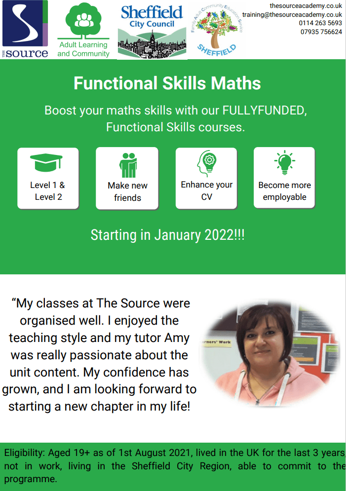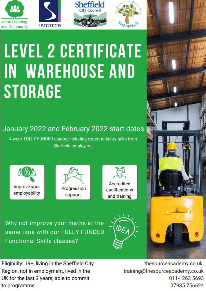 Starting in January, The Source will be running courses fully funded by the Adult Education Budget including Maths Functional Skills and Level 2 Warehouse and Storage.