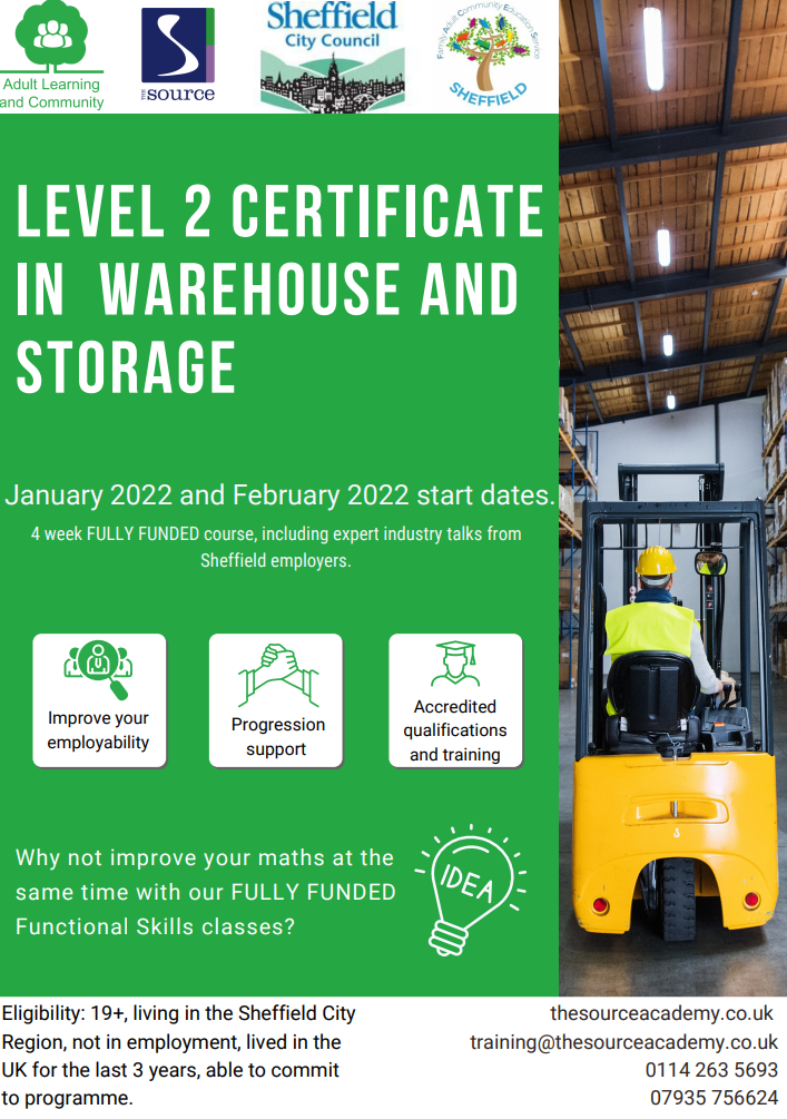 The Source has three new courses available for January starters funded by the Adult Education Budget in Warehouse and Storage, Functional Skills Maths, and Mental Health Awareness.