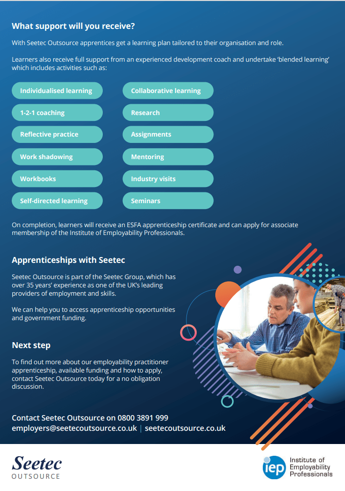 The employability practitioner apprenticeship is ideal for anyone delivering employability support across the public, private or charitable sectors. Co-developed with the Institute of Employability Professionals (IEP), the programme has been designed to address the specific development needs of employability professionals within your organisation.
