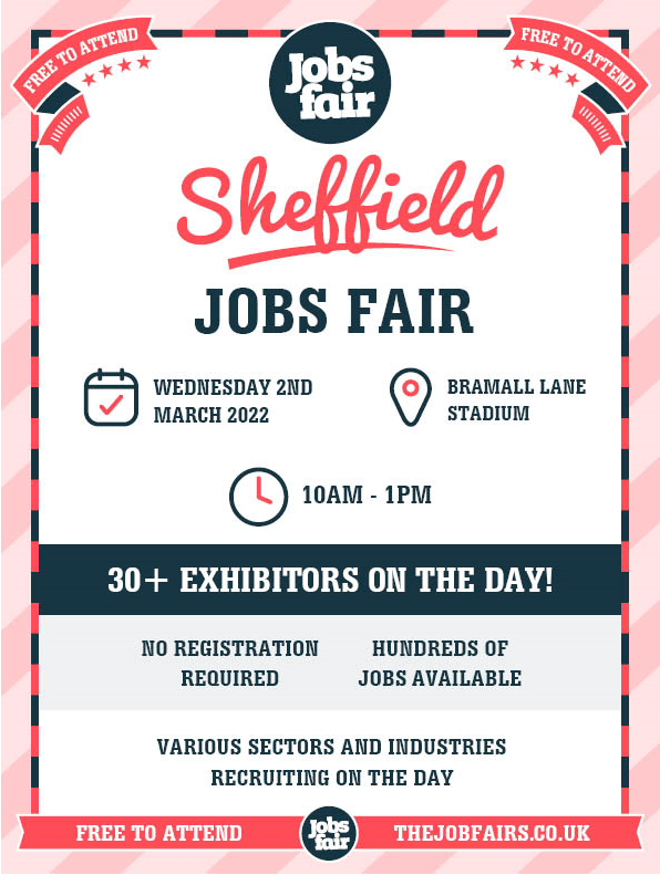Jobs Fair Limited will be hosting a Sheffield jobs fair on Wednesday 2 March from 10am-1pm at Bramall Lane Stadium, Sheffield.