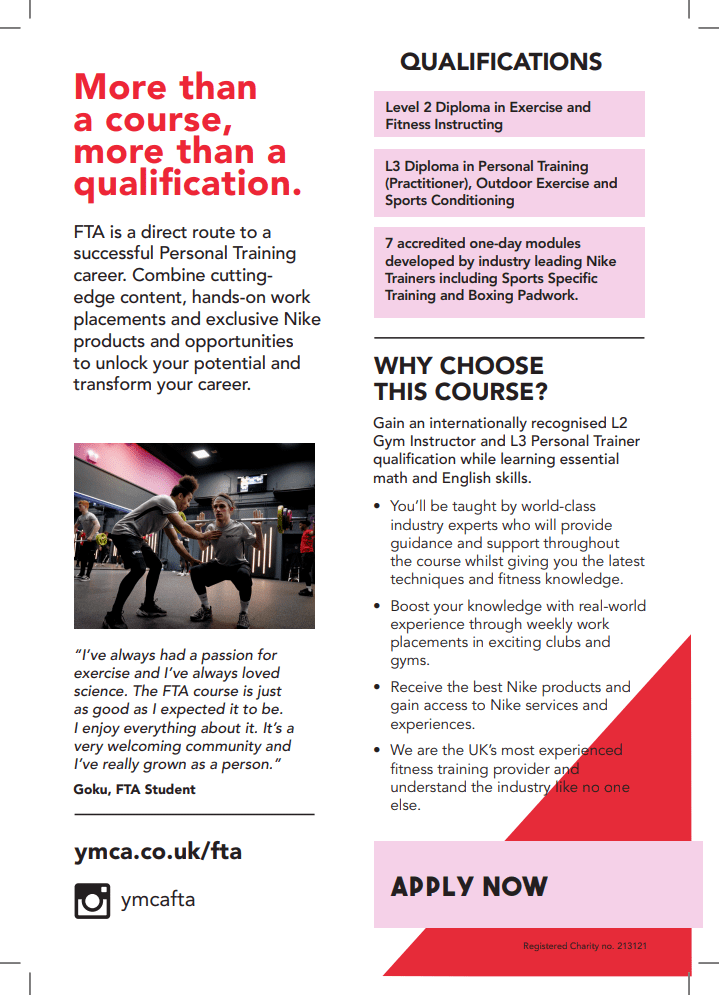 YMCA is now enrolling for its Nike Fitness Training Academy which will start in September for 16-18-year-olds.