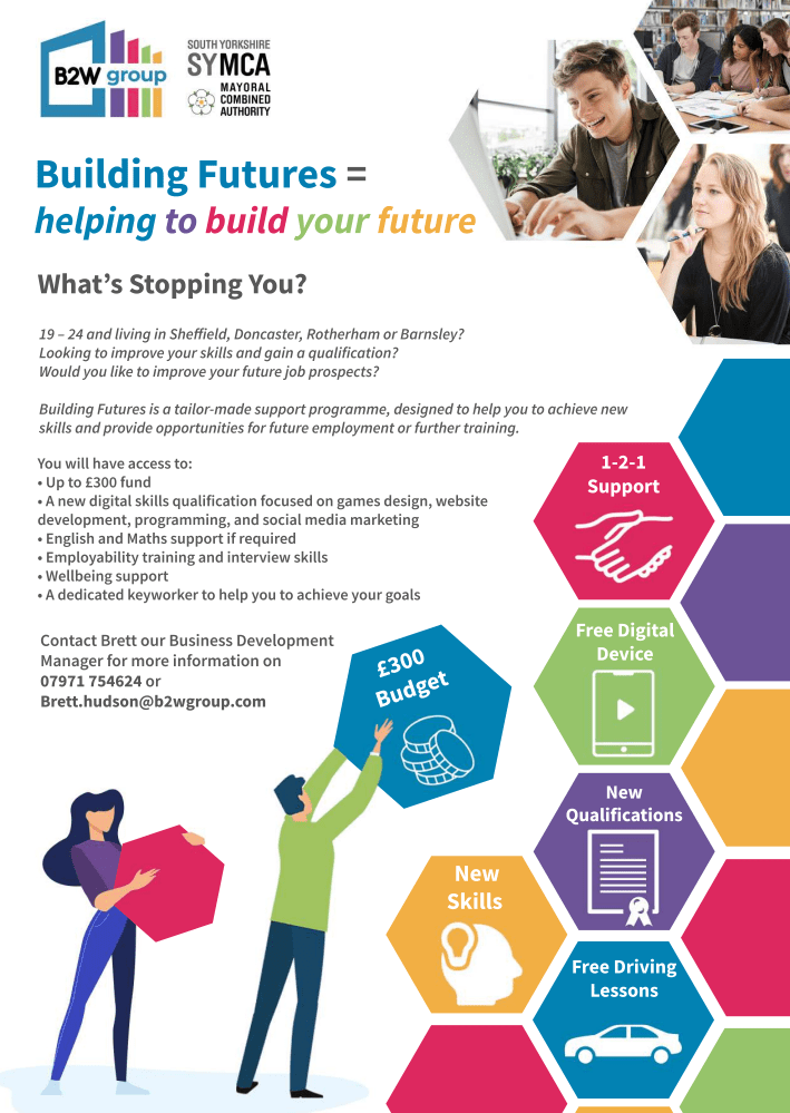 B2W Group is taking referrals now for March starts on its Building Futures provision which aims to support 19-24-year-old NEETs in gaining new qualifications in Employability, Web design and Gaming Development via online tutoring.