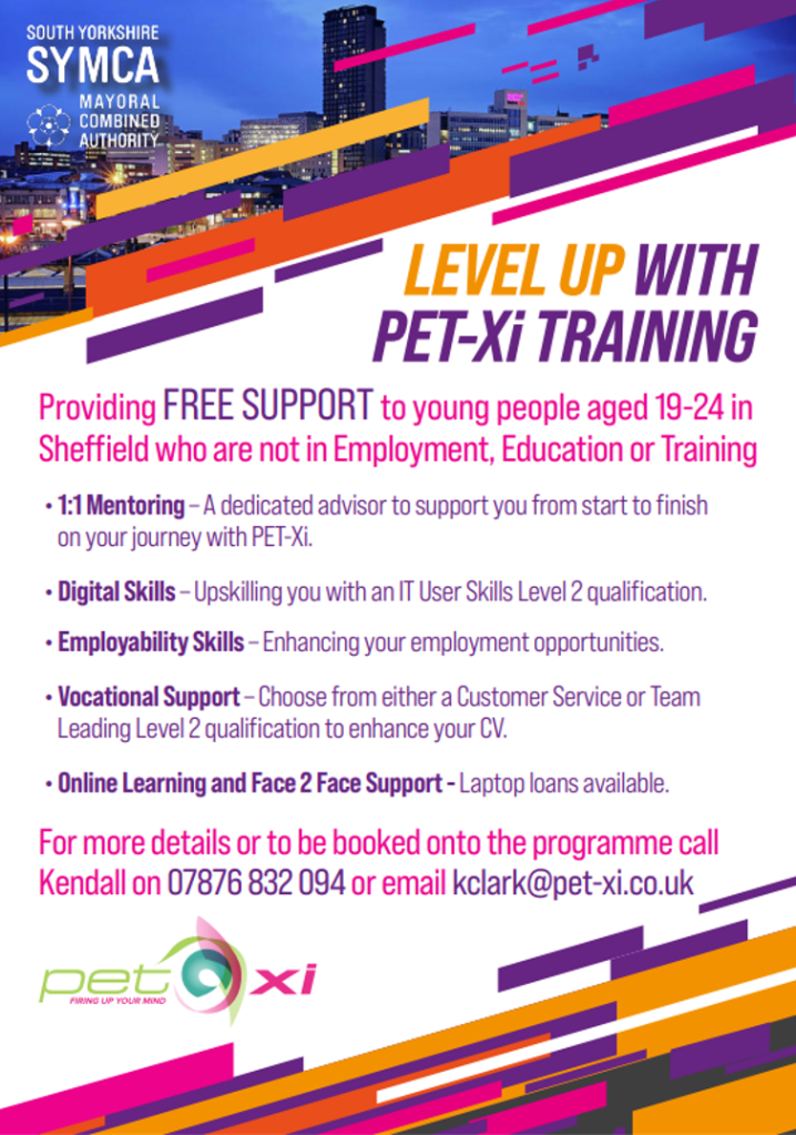 PET-Xi Training is now offering remote and face-to-face support for 19-24-year-old care leavers across Sheffield who are not in employment, education or training. Its mission is to inspire and empower young people into work.