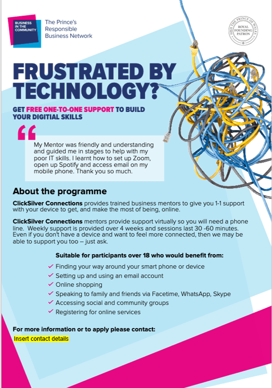 ClickSilver Connections is an intergenerational programme which helps to bridge the digital divide between young and old through the sharing of skills and knowledge. BITC matches eligible participants with business volunteers to provide one to one virtual support over a 4-week period with calls typically lasting 30minutes – 1 hour (one call a week).