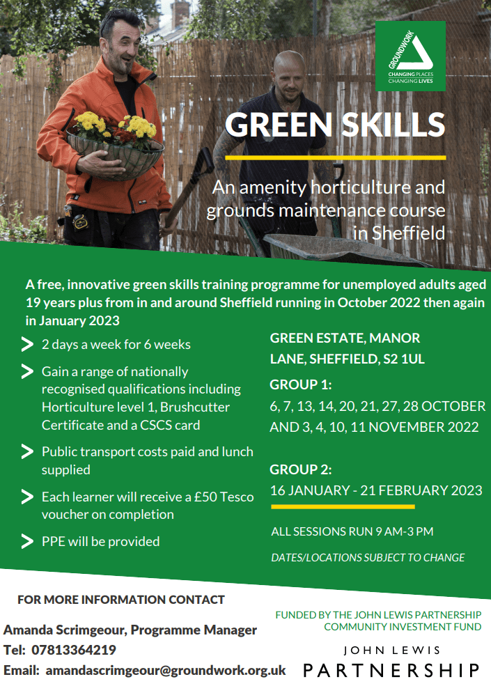 Groundwork’s next Green Skills course starts on Thursday 6 October 2022 at the Green Estate in Sheffield, S2.
