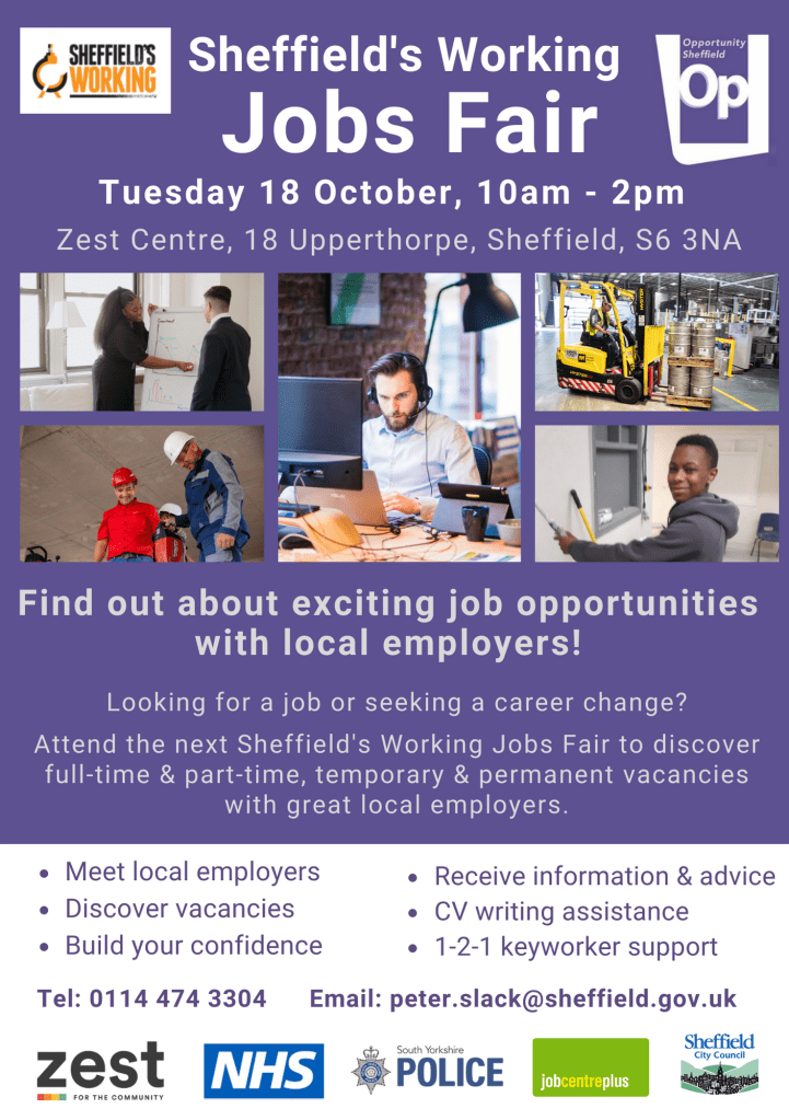 The eighth Sheffield’s Working Jobs Fair of 2022 will take place at the Zest Centre in Upperthorpe on Tuesday 18 October.
