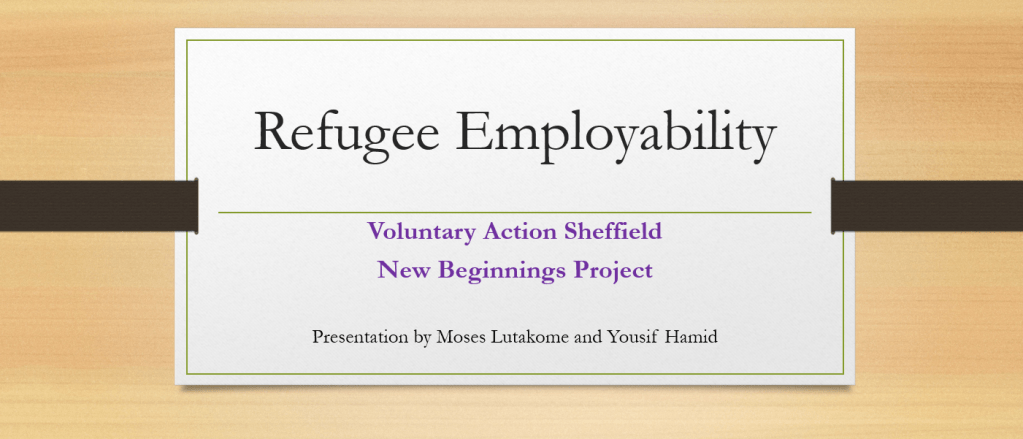 At the Teacake Club meeting on Friday 30 September, Moses Lutakome and Yousif Hamid from Voluntary Action Sheffield’s New Beginnings project delivered a presentation on employability support for refugees.